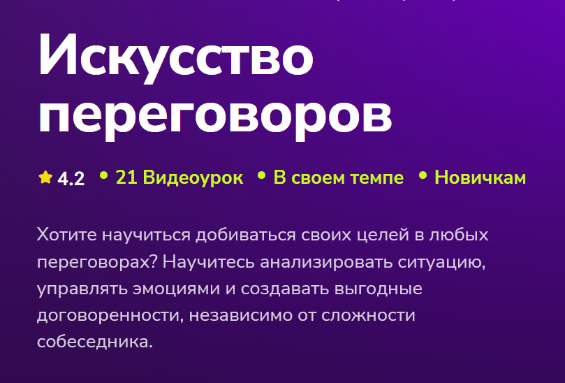 Многие сталкиваются с потерей контроля в стрессовых ситуациях и не могут отстоять свои интересы перед сложными собеседниками. Этот курс поможет вам трансформировать страх перед переговорами в уверенность, научит управлять эмоциями и выстраивать диалог на основе стратегий Win-Win. Вы получите инструменты для подготовки к встречам любого уровня сложности, что позволит вам закрывать сделки на...