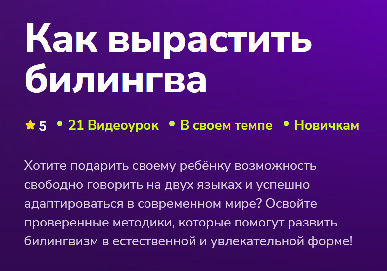 Хотите подарить своему ребенку преимущество свободного владения двумя языками в современном глобальном мире? Данный курс поможет вам создать естественную и поддерживающую среду для гармоничного развития билингвизма прямо у вас дома. Вы освоите проверенные методики, которые превращают обучение в увлекательный процесс, не перегружая малыша. Начните путь к будущему успеху вашего ребенка уже сегодня, понимая механизмы работы мозга и психологии юных полиглотов.